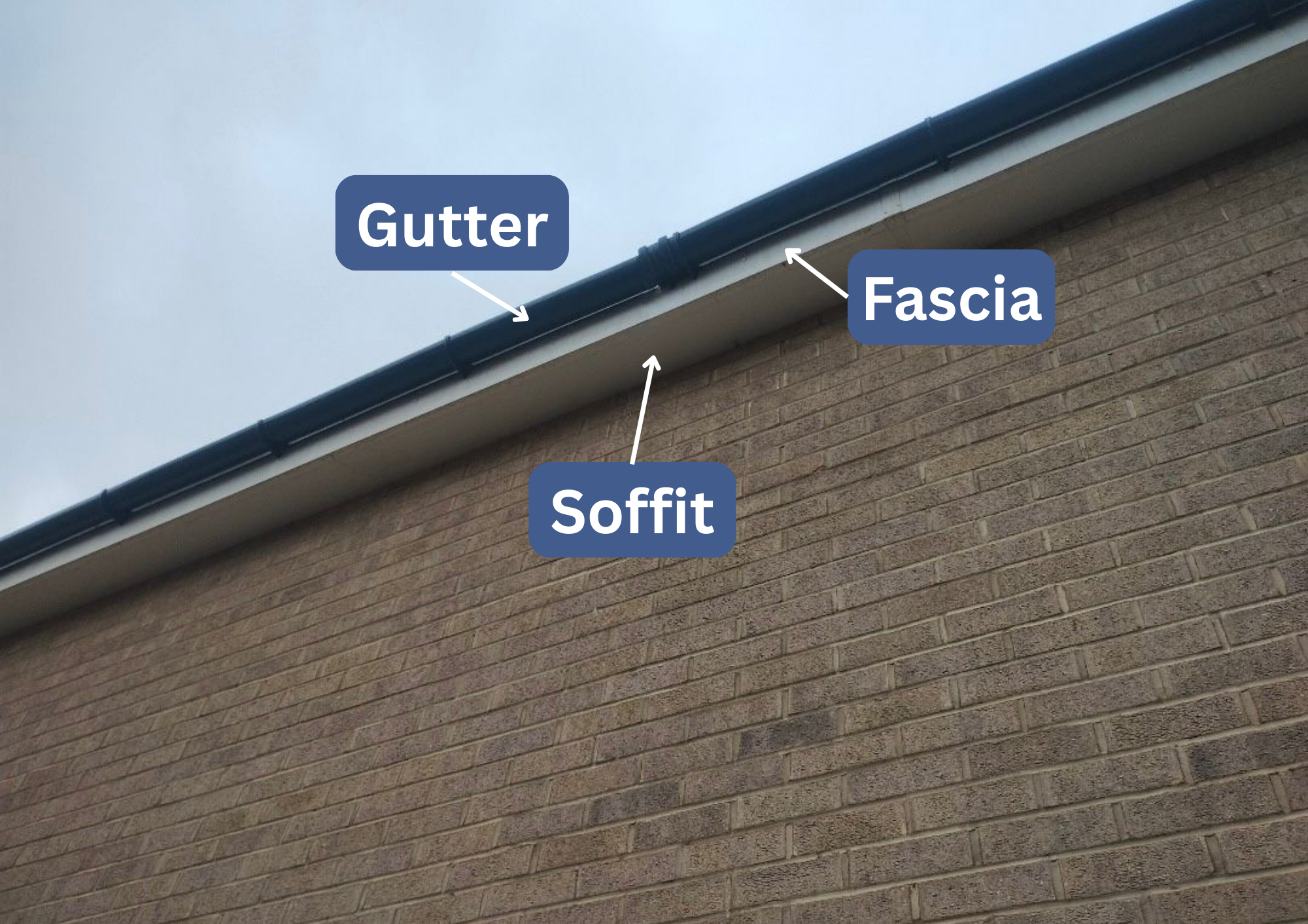 Fascias are horizontal boards fixed to the lower edge of the roof, directly beneath the roof tiles. They run around the perimeter of your property and are clearly visible from the ground.